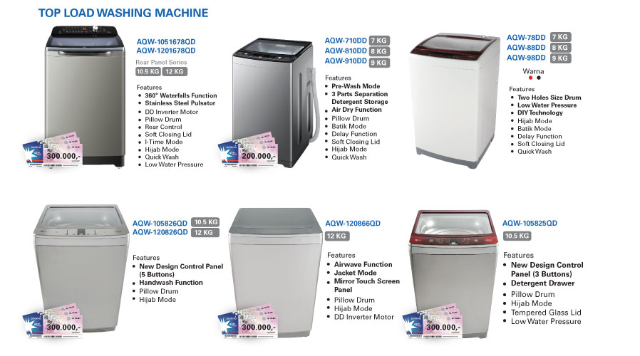 Promo ini berlaku untuk setiap pembelian produk mesin cuci AQUA Elektronik berikut:*