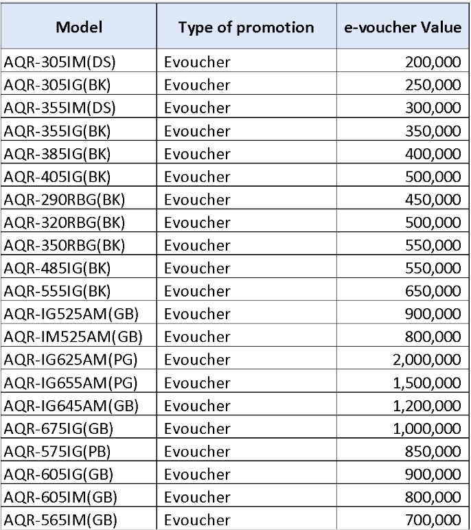 Daftar Kulkas model tertentu yang mendapatkan hadiah e-voucher