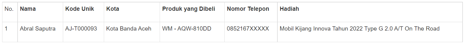 1 Pemenang Mobil Toyota Kijang Innova