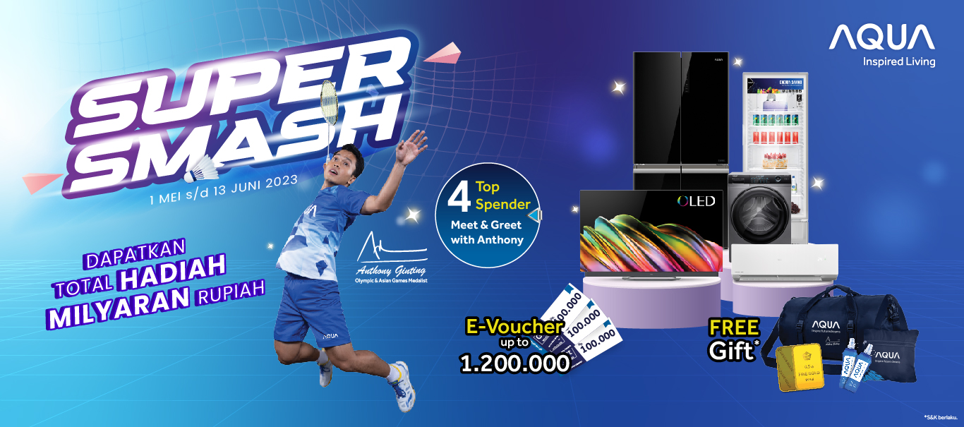 Ada kejutan baru untuk para pelanggan setia AQUA Elektronik! Para pelanggan berkesempatan untuk memenangkan hadiah menarik dengan mengikuti program AQUA ‘Super SMASH’ 2023.
