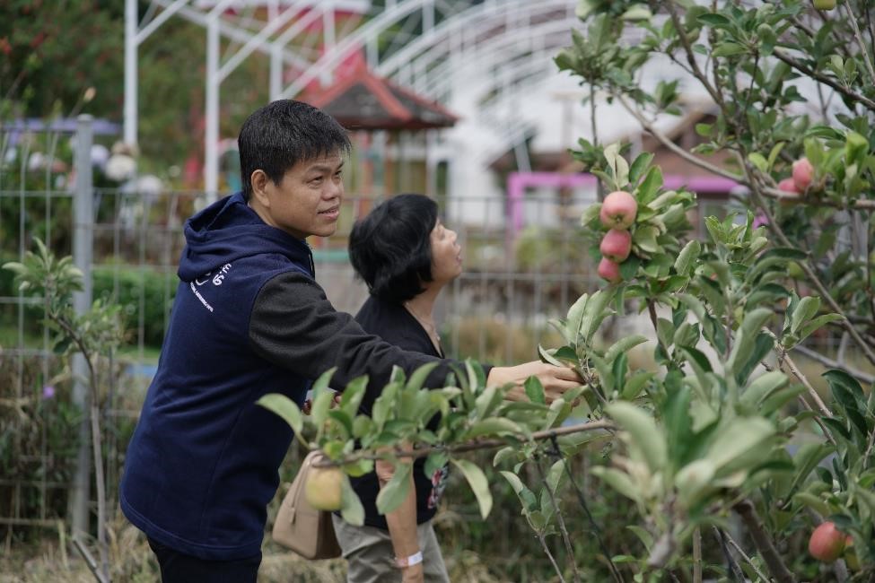 Peserta National Dealers Gathering tampak sangat menikmati kunjungan ke Kusuma Agrowisata. Segarnya udara sekaligus merasakan sensasi memakan buah apel yang dipetik langsung dari pohonnya.