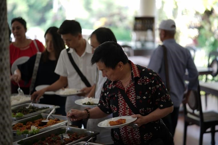 Diawali dengan sarapan pagi bersama, peserta National Dealers Gathering AQUA Elektronik 2018 yang berlangsung di Batu-Malang, Jawa Timur tampak antusias untuk mengikuti acara One Day Tour mengunjungi daerah-daerah wisata populer di Malang. Acara berlangsung 14 November 2018.