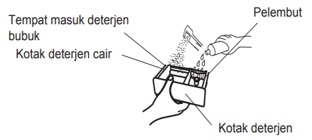 3.Sebelum mencuci, tuangkan deterjen cair ke dalam kotak deterjen cair secara langsung seperti ditunjukkan pada gambar.