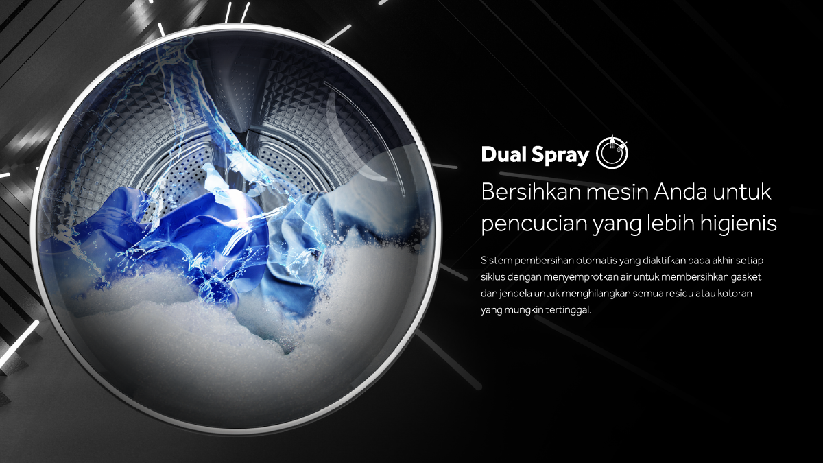 Menghilangkan residu detergen pada karet gasket sehingga menciptakan ruangan mesin cuci yang bersih.