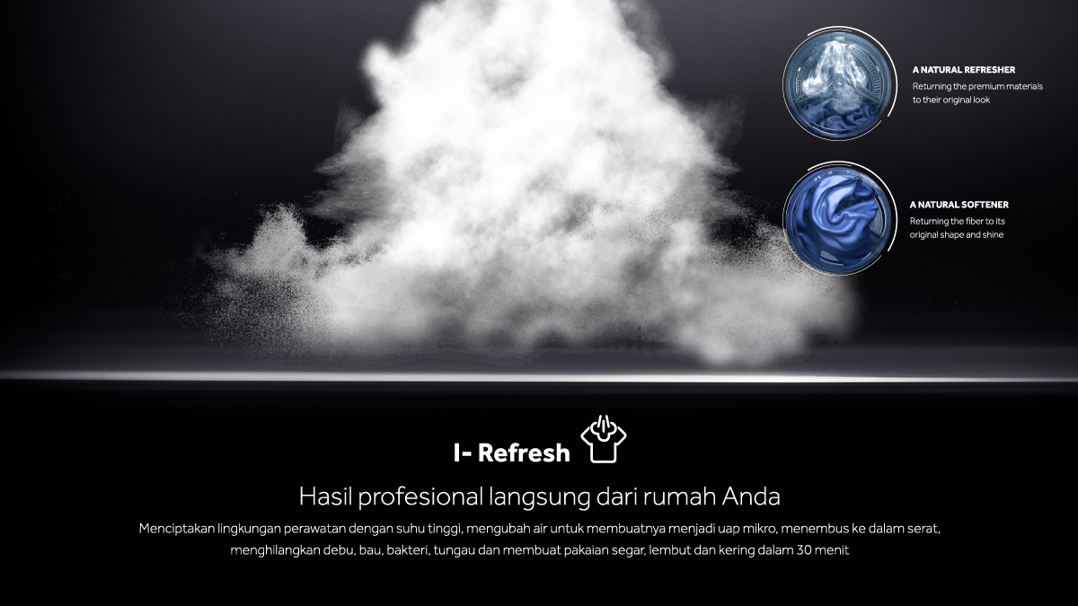 Hasil profesional langsung dari rumah Anda. Menciptakan lingkungan perawatan dengan suhu tinggi, mengubah air untuk membuatnya menjadi uap mikro, menembus ke dalam serat, menghilangkan debu, bau, bakteri, tungau dan membuat pakaian segar, lembut dan kering dalam 30 menit.